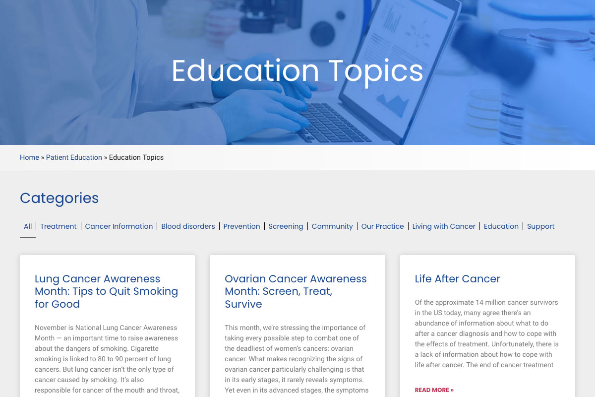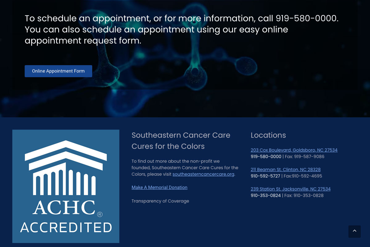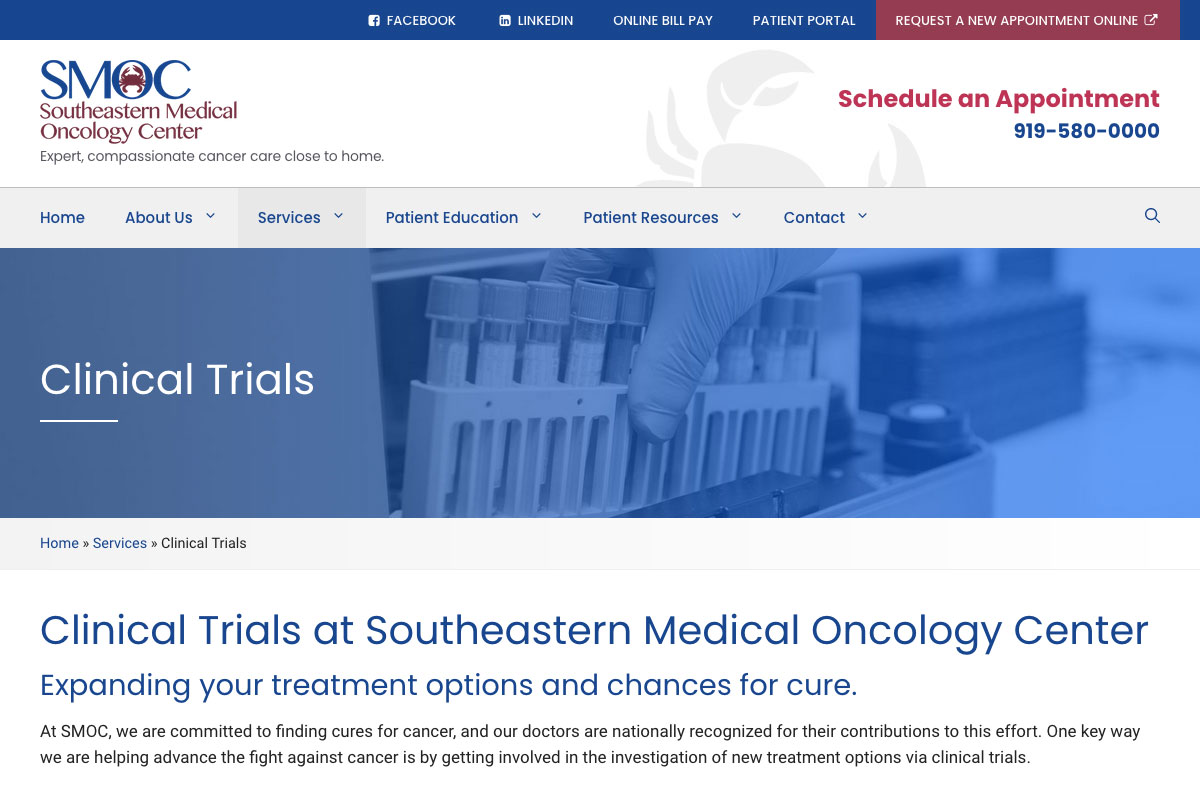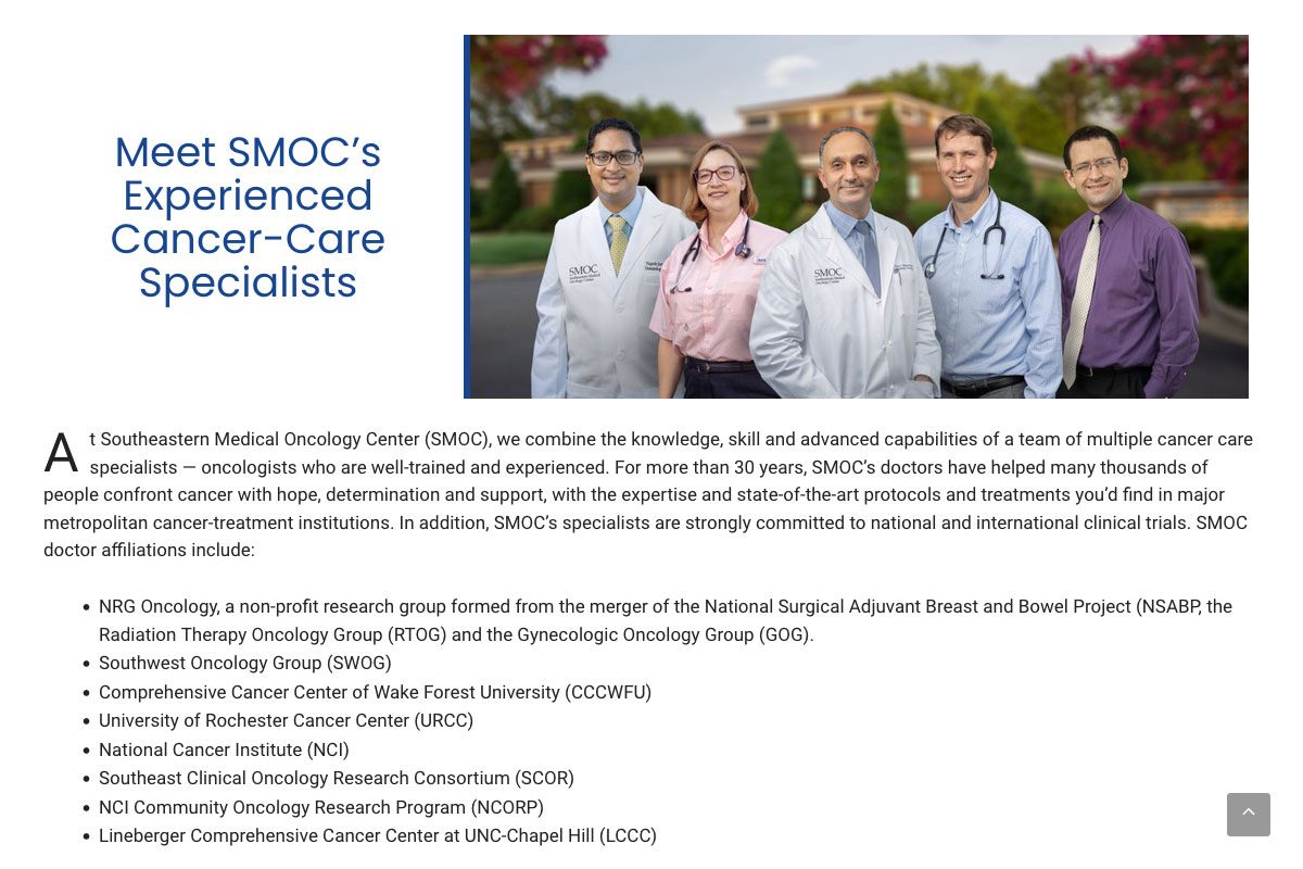 Southeastern Medical Oncology Center is dedicated to providing the highest standard of cancer care. During that time, they’ve built a top-quality team, reputation and treatment program on the principles of state-of-the-art care and total commitment. My role was sole designer/developer to update an older website
